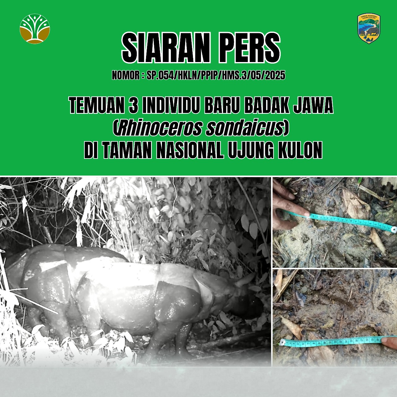 Kabar gembira datang lagi dari Taman Nasional Ujung Kulon (TNUK), yakni berupa temuan tiga individu baru badak jawa yang teridentifikasi berdasarkan tapak dan kamera trap.