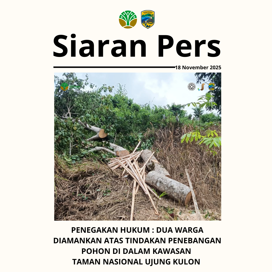 Pandeglang, 18 November 2025, Balai Taman Nasional Ujung Kulon (TNUK) melalui Seksi Pengelolaan Taman Nasional (SPTN) Wilayah III Sumur telah mengamankan dua orang pelaku atas nama Amirudin alias Amir, 61 tahun dan Arsana alias Sana, 41 tahun karena tertangkap tangan melakukan penebangan pohon Kecapi (Sandoricum koetjape) di dalam kawasan TNUK. Kedua pelaku telah diserahkan kepada Penyidik Polsek Cimanggu untuk proses hukum lebih lanjut sesuai Surat Tanda Penerimaan Laporan nomor: STPL/06/VI/2025/Sektor Cimanggu tanggal 24 Juni 2025, dan saat ini perkara telah diproses sesuai ketentuan yang berlaku di Pengadilan Negeri Pandeglang.